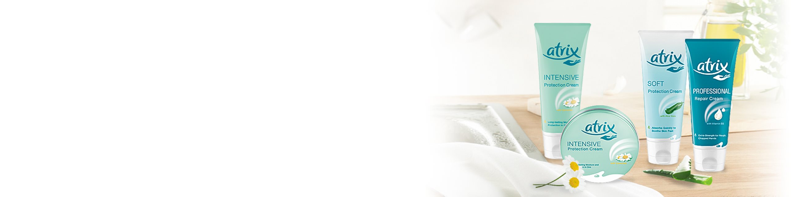 Le succès international dont jouit la marque doit avant tout être attribué à son efficacité : Atrix fut la 1ère crème pour les mains au monde qui non seulement hydrate les mains, mais les protège également activement. Les lipides de haute qualité, le Panthenol et la Glycérine procurent une hydratation longue durée, tandis que la Camomille et l’Aloe vera sont facteurs de régénération et de protection. De plus, lorsqu’elle est appliquée avant le travail manuel, Atrix protège même les peaux sèches et gercées comme un gant invisible.